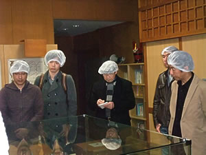 午後からは北の誉酒泉館を見学させていただきました。酒造りの工程から、麹室、搾り機、貯蔵タンク、大吟醸酒の発酵の様子を見学させていただき、貯蔵タンク内の香りを嗅ぐことができ、大変貴重な体験となりました。